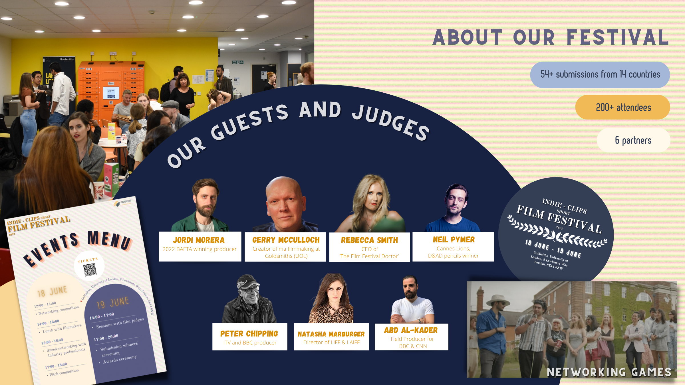 With a student and early-career film audience in mind, we introduced interactive networking games and informal formats to spark conversation and collaboration. Our aim was to create a welcoming space where creative relationships could grow alongside the films being shown.